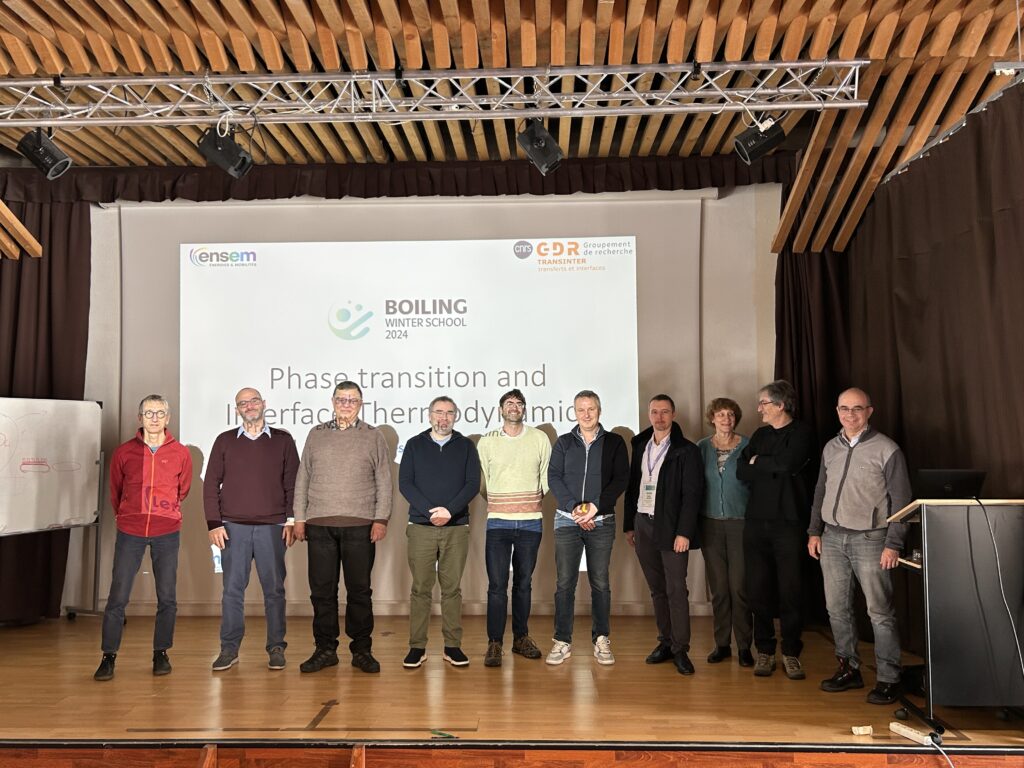 L’équipe enseignante (presque) au complet. De gauche à droite: Benoit Stutz (LOCIE, Univ. Chambéry), Mattéo Bucci (MIT,Cambridge), Vadim Nikolaiev (CEA,Saclay), Benjamin Duret (CORIA, Univ. Rouen Nromandie), Pierre Ruyer (ASNR), Sébastien Tanguy (IMFT, Univ. Toulouse), Matevz Zupancic (Univ. Ljubjana), Catherine Colin (IMFT, Univ. Toulouse), Renaud Meignen (ASNR), Nicolas Rimbert (LEMTA, Univ Lorraine)
